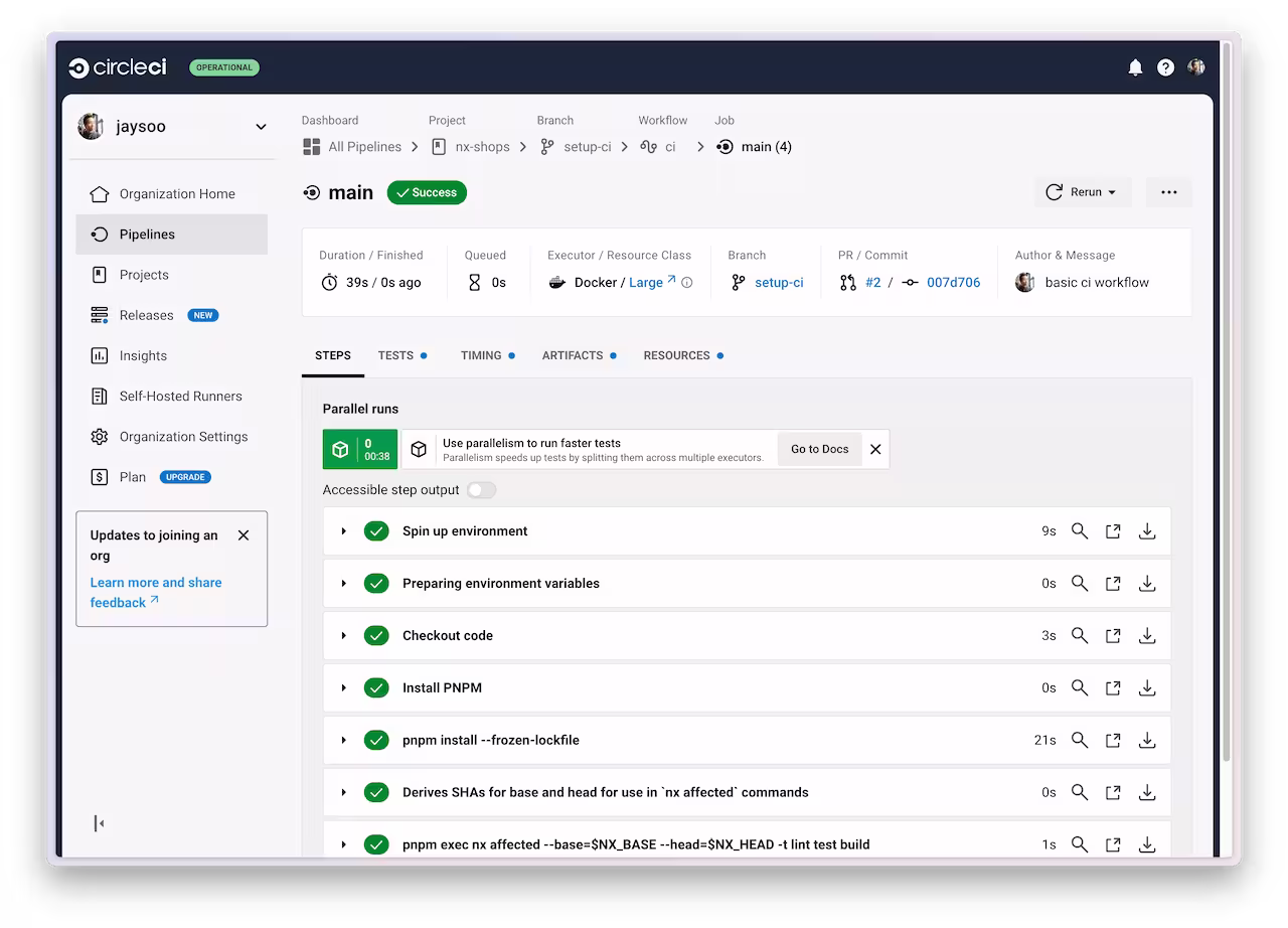You now have a highly optimized CI configuration that will scale as your repository scales. See what else you can do with Nx Cloud.